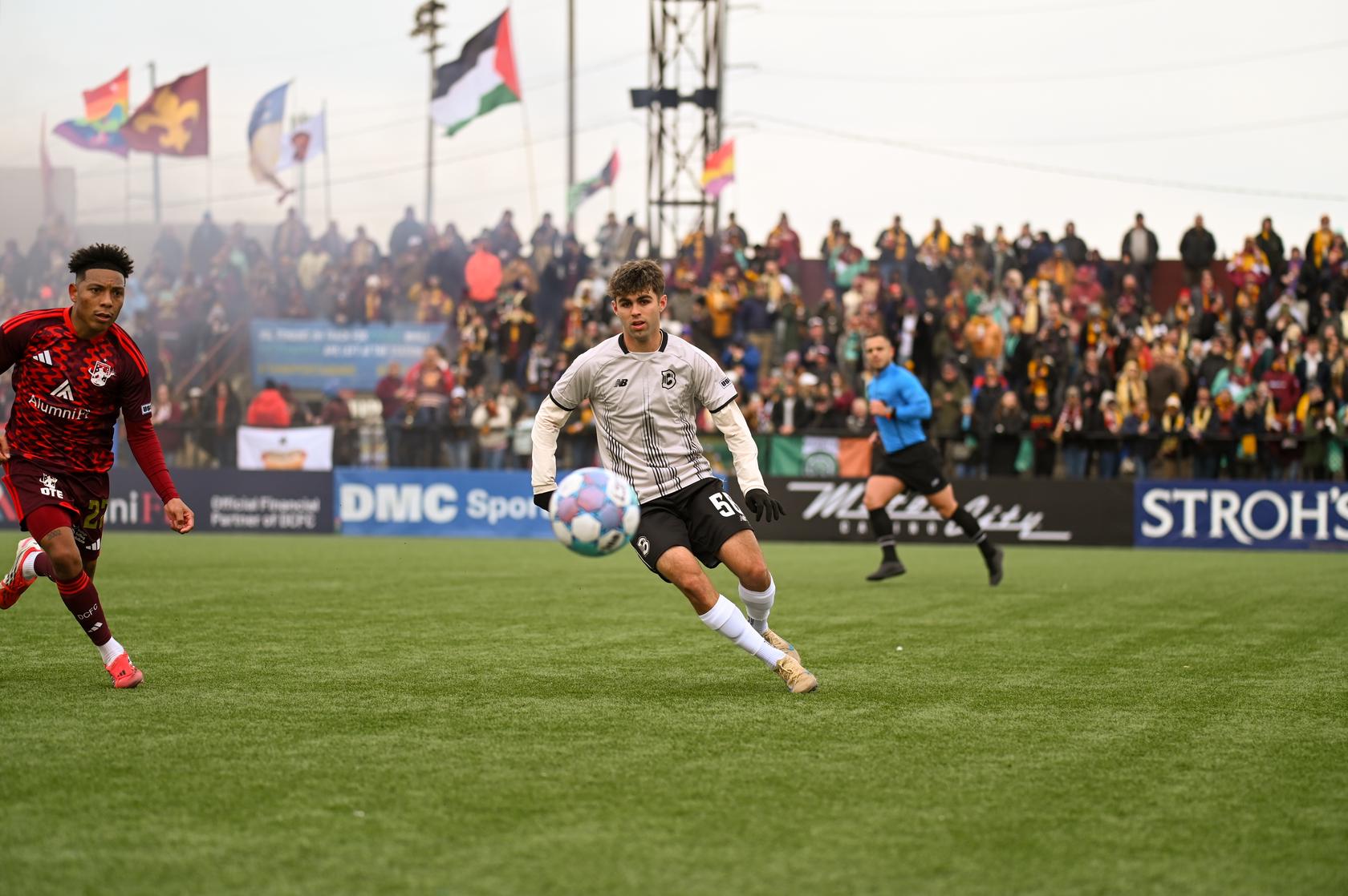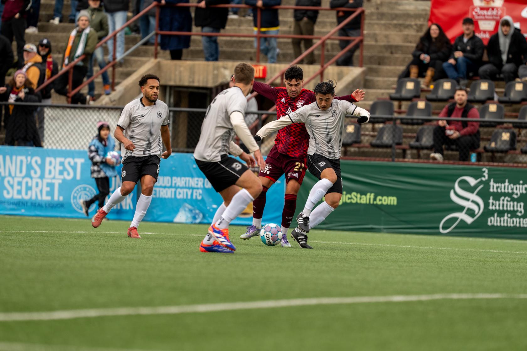 Detroit, Michigan, March 14, 2026 – Brooklyn Football Club (Brooklyn FC) fell 3–0 to Detroit City FC on Saturday evening. Detroit opened the scoring early in the 3rd minute when forward Darren Smith finished a right-footed strike from outside the box into the bottom left corner after a through ball from midfielder Devon Amoo-Mensah. Brooklyn looked to respond with chances of their own, including a long-range effort from forward Juan Obregón in the 12th minute that was saved by Detroit goalkeeper Carlos Herrera. Detroit doubled its lead in the 32nd minute when Smith scored again from very close range following a set piece, sending the hosts into halftime with a 2–0 advantage.